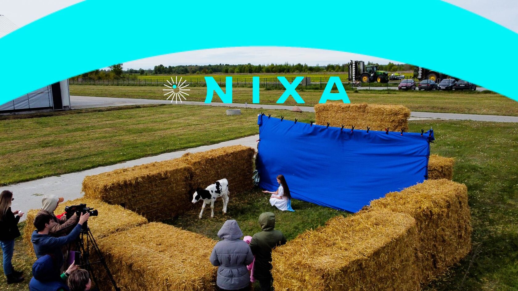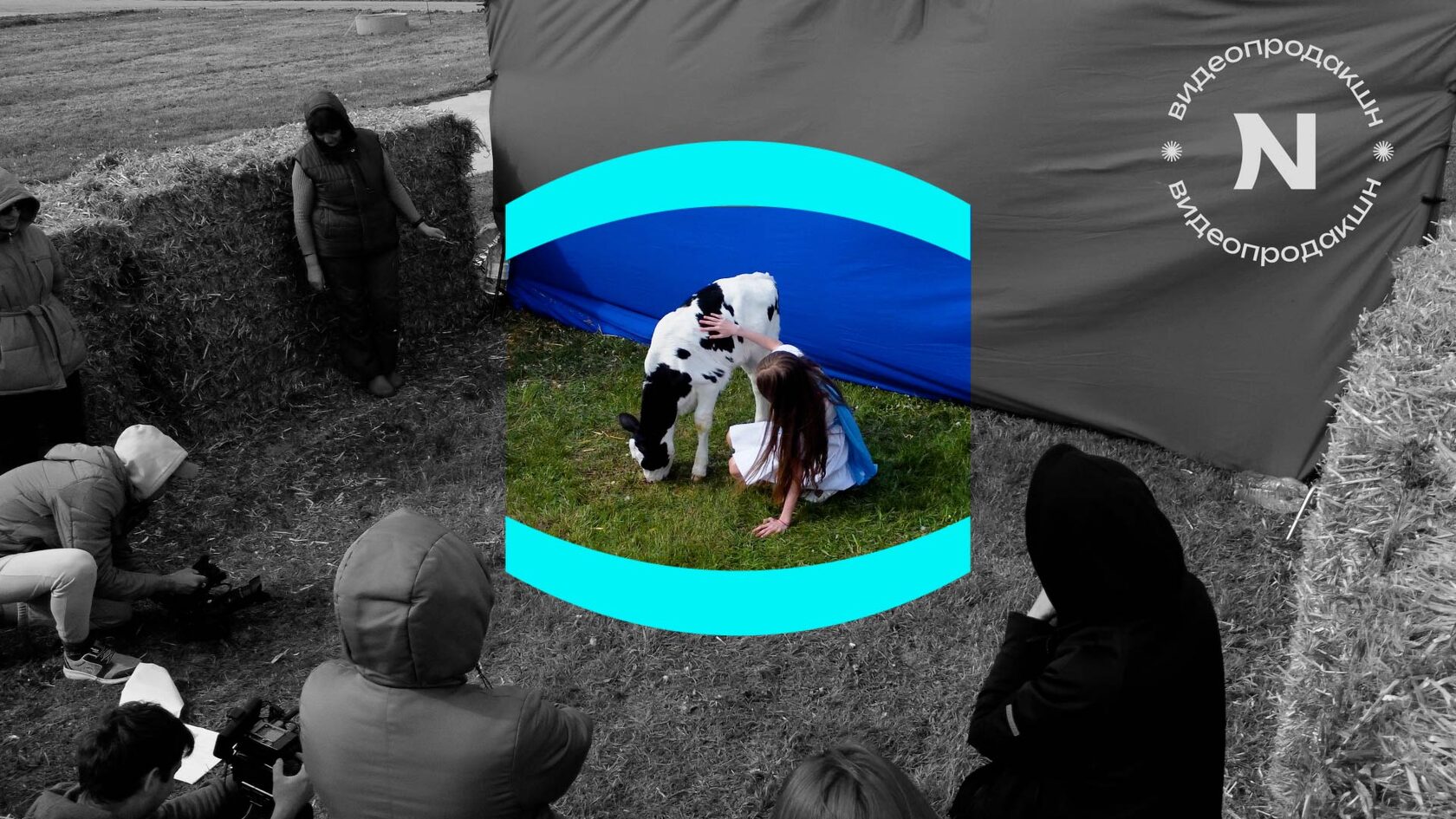 Первая съемочная смена была с теленком. По творческой задумке мы хотели снять конкретного теленка на фермере и потом его с помощью монтажа переместить на разные локации. И все должно было быть натурально без использования нейросетей. Для этого нам пришлось построить целую студию на свежем воздухе для теленка. Мы сделали большой загон для теленка, в котором натянули большой синий хромакей.