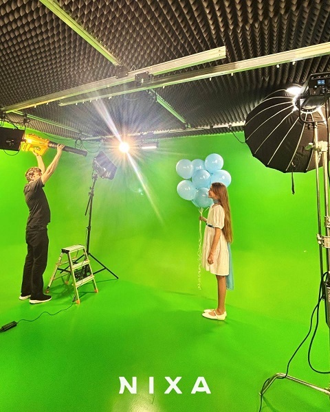 После успешно проведенных съемок с теленком мы провели следующую не менее инетересную смену, которая была в хромакей студии. В этом моменте мы снимали кадры с полетом актрисы и продукции. По задумке главная актриса должна была взлететь в небо и лететь через левитирующую продукцию "Залесского фермера".